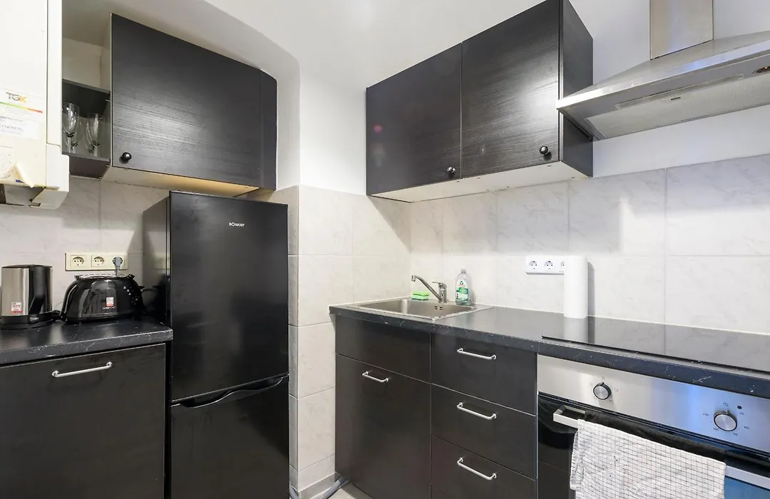 Dotato di servizi per la preparazione di tè/caffè e di una cucina, quest'appartamento offre una macchina per caffè e tè, un frigo e utensili da cucina.